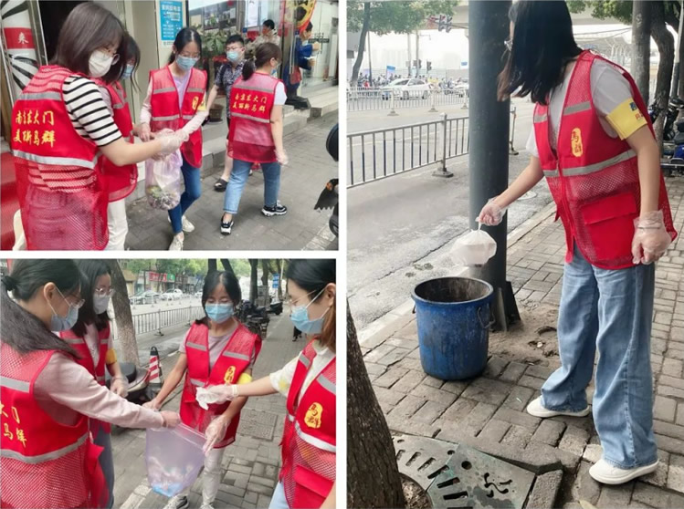 木蘭班的干部們領(lǐng)取了清潔所需的垃圾袋和手套。面對(duì)人行道上出現(xiàn)的垃圾,她們不怕臟累,一次次的彎腰撿起。煙頭、紙團(tuán)等小型垃圾收集至垃圾袋中,快餐盒、椰子殼等大型垃圾則就近丟棄至垃圾桶內(nèi)。