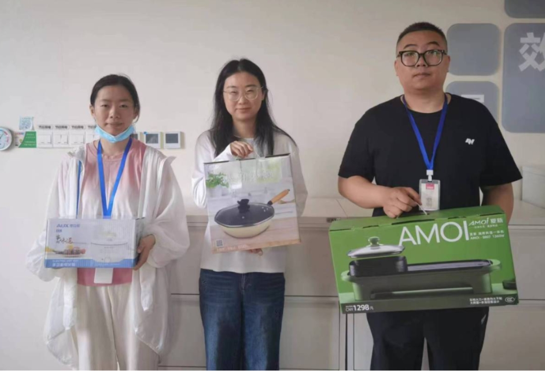 最后大家把自己的作品發(fā)到群中進行了評選,最終評選出了前三名作品的獲獎?wù)哌M行了頒獎。來自制造部小容量注射劑1號車間的鄧偉、楊安琪和安全環(huán)保部的湯嘉琪。