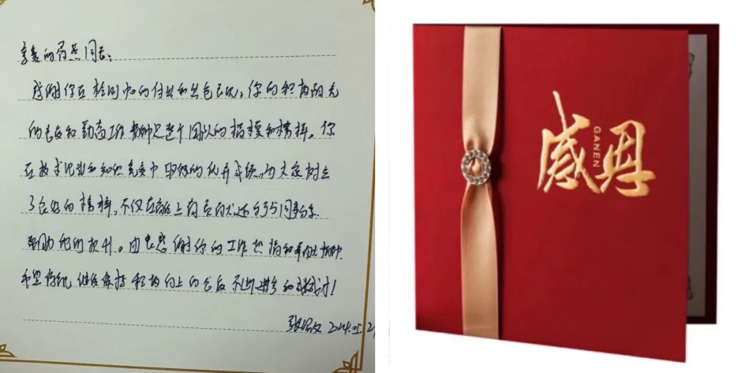感謝卡:2022年加入公司,以肉眼可見的速度在成長,從崗位歷練2個月,到接崗工藝員,再到接手變更發(fā)起和偏差調(diào)查,不斷遇到困難,不斷戰(zhàn)勝困難。嚴(yán)謹(jǐn)?shù)乃悸罚咝У貓?zhí)行,是你的特征,謝謝你給車間帶來的幫助,也希望你能繼續(xù)在這個平臺上成長和突破。