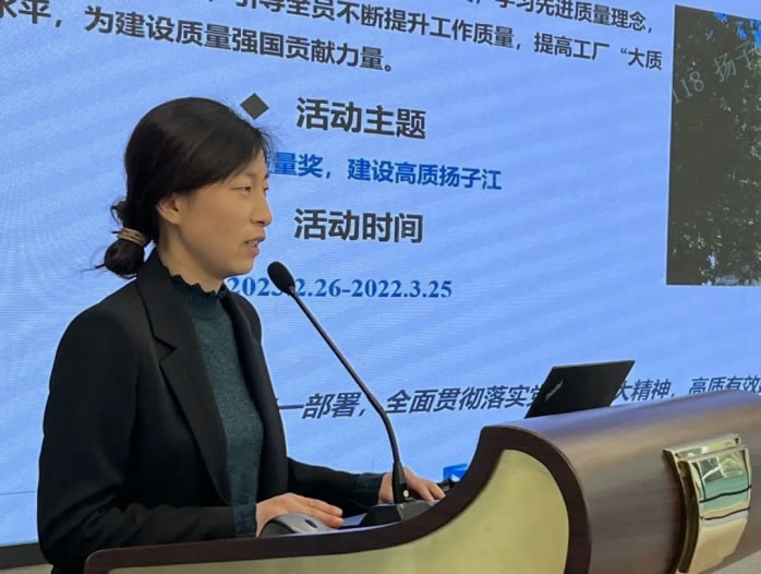 質(zhì)管部部長馮小雪對(duì)第三十五次“質(zhì)量月”活動(dòng)進(jìn)行總結(jié)發(fā)言