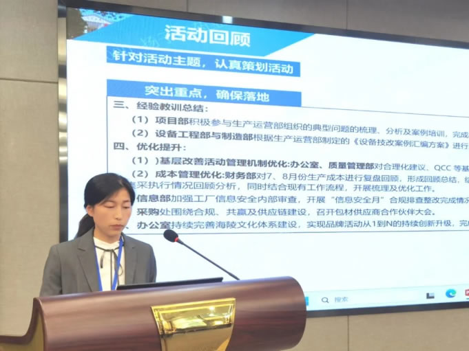 馮部長(zhǎng)對(duì)第三十六次“質(zhì)量月”活動(dòng)進(jìn)行總結(jié)發(fā)言。圍繞本次活動(dòng)內(nèi)容、不足與改進(jìn)以及承上啟下內(nèi)容進(jìn)行展開(kāi):1)在總結(jié)中,她通過(guò)正反面案例展示活動(dòng)期間各部門(mén)的亮點(diǎn)工作和不足;2)她強(qiáng)調(diào)要強(qiáng)化質(zhì)量月內(nèi)容與標(biāo)準(zhǔn)模板的解讀,保證材料輸出的質(zhì)量;3)最后,她針對(duì)質(zhì)量管理部制定的崗位“放心人”選拔方案進(jìn)行解讀,希望大生產(chǎn)系統(tǒng)各部門(mén)能夠選拔更多的放心人,挖掘新生力量,推動(dòng)企業(yè)不斷成長(zhǎng)。
