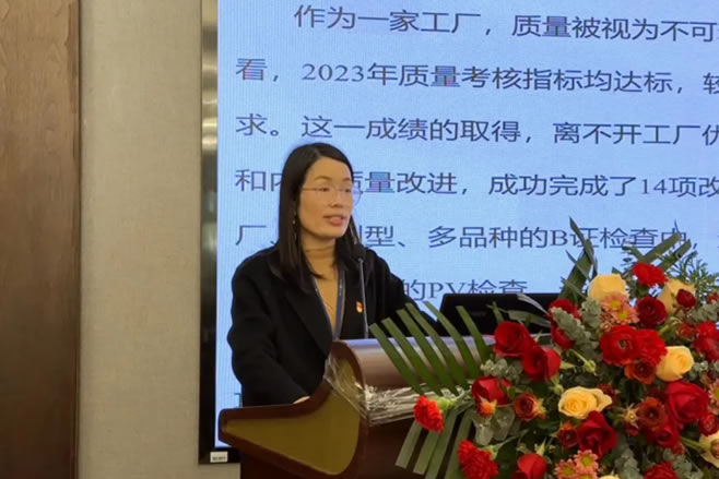 會(huì)議伊始,海陵黨支部書記、海陵工廠廠長助理李靜做出以《踔厲奮發(fā)新征程,終身成長再起航》為題的海陵藥業(yè)2023年終工作報(bào)告??偨Y(jié)了海陵人2023年展現(xiàn)出的拼搏精神和奮斗姿態(tài),以及取得的來之不易的成果,更為海陵明確了2024年的努力方向。