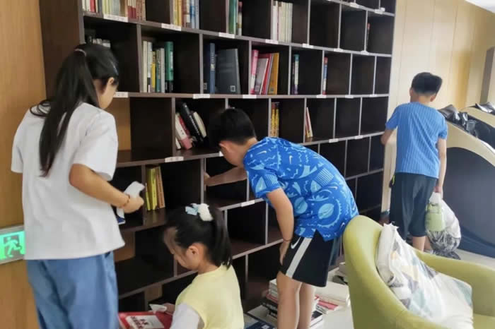 8月16日下午,孩子們在老師的帶領(lǐng)下,對教室、宿舍樓圖書角進行了掃除,一個半小時的時間里,他們把教室清空,把學習用品和手工材料碼放得整整齊齊。清理完教室之后,孩子們又轉(zhuǎn)戰(zhàn)宿舍圖書角,將書架臺面、夾層都擦得一塵不染。