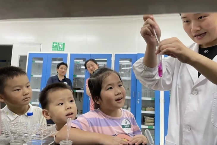 9月8日上午,工匠與家屬在海陵員工的陪同下參觀廠區(qū),在講解中加深了對(duì)車間一線工作、質(zhì)量檢測(cè)環(huán)節(jié)、倉(cāng)庫(kù)收容體系等工廠生產(chǎn)的了解,零距離感受到海陵“為親人制藥、為父母制藥”的質(zhì)量文化,家屬深感放心與欣慰。隨后,工匠們分別帶領(lǐng)家屬參觀自己的工位。質(zhì)管部還為家屬們準(zhǔn)備了趣味實(shí)驗(yàn),在“瓶瓶罐罐”中體會(huì)實(shí)驗(yàn)的樂(lè)趣。小朋友們?cè)谶@一環(huán)節(jié)尤為開(kāi)心,寓教于樂(lè),培養(yǎng)了學(xué)習(xí)興趣。