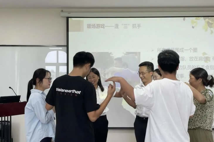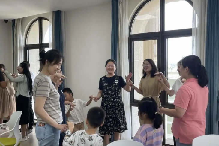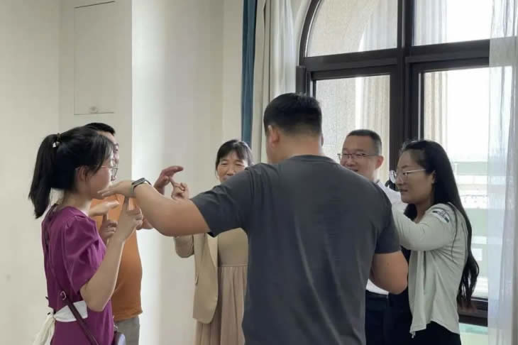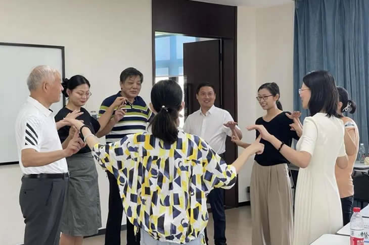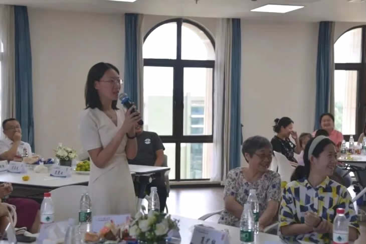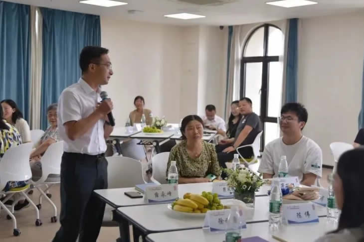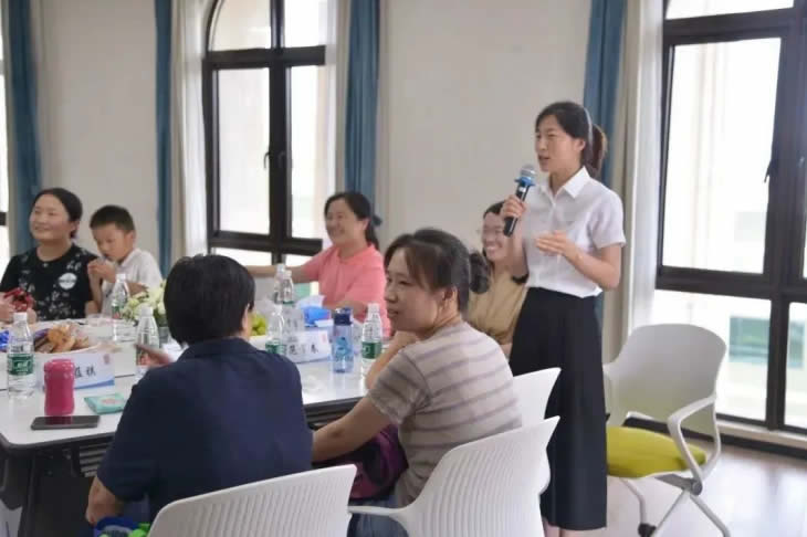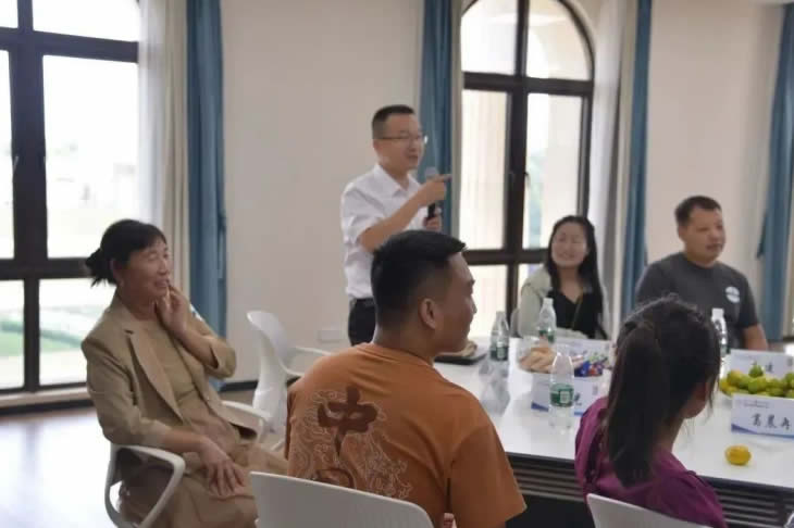 結(jié)束參觀后,家屬們跟隨工匠走入座談會(huì)現(xiàn)場(chǎng),傾聽(tīng)主持人介紹海陵藥業(yè)的企業(yè)文化。座談會(huì)開(kāi)始,大家在“抓手指”游戲中打破拘謹(jǐn)、放松心情,歡聲笑語(yǔ)充盈著整個(gè)會(huì)議室。