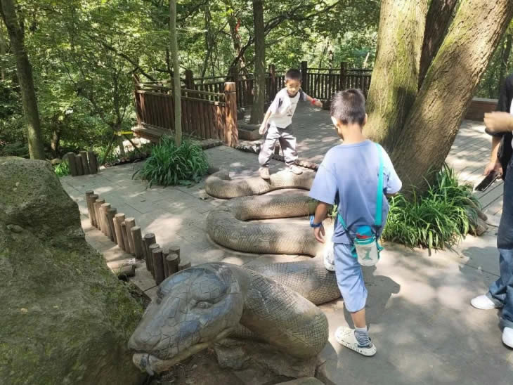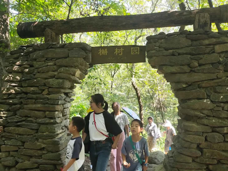綠樹(shù)蔭濃夏日長(zhǎng),行程第一站是鐵山寺國(guó)家公園。在導(dǎo)游的講解與陪同下,工匠與家屬步行2小時(shí)穿越這處天然氧吧。途中經(jīng)過(guò)鐵山寺、孔雀園、蟒蛇澗、石鼓堆等兼具人文氣息與自然美景的林中站點(diǎn),認(rèn)識(shí)了“咬人樹(shù)”漆樹(shù)、金錢草等植物,在伏案工作之外獲得天然體驗(yàn)。