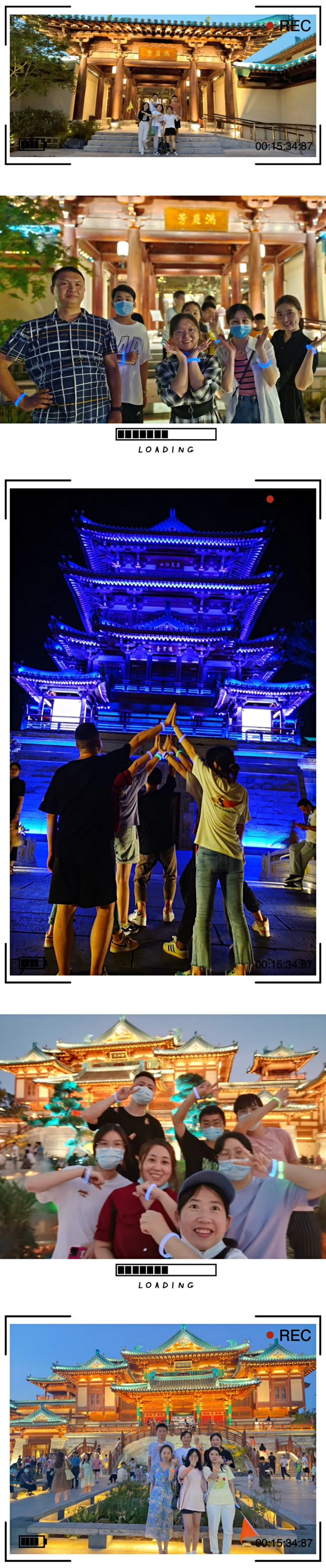 5個(gè)小組用餐后包車來到了小城。夜幕降臨之時(shí)是小城最美的時(shí)刻,大家仿佛一腳踏入了時(shí)間的長河,華燈初上,整座小城在燈光的勾勒下熠熠生輝,琉璃屋檐線條流暢,亭臺樓閣古風(fēng)盎然,再現(xiàn)著金陵古城的風(fēng)雅與浪漫。