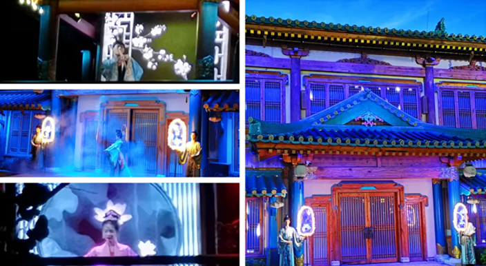 看建筑,文心館、鄰曲巷、滿庭芳、凌霄臺、綠筱園融為一體,相得益彰;看演出,六朝的文明記憶在演出中被悄然喚醒,小伙伴們也紛紛沉浸其中。