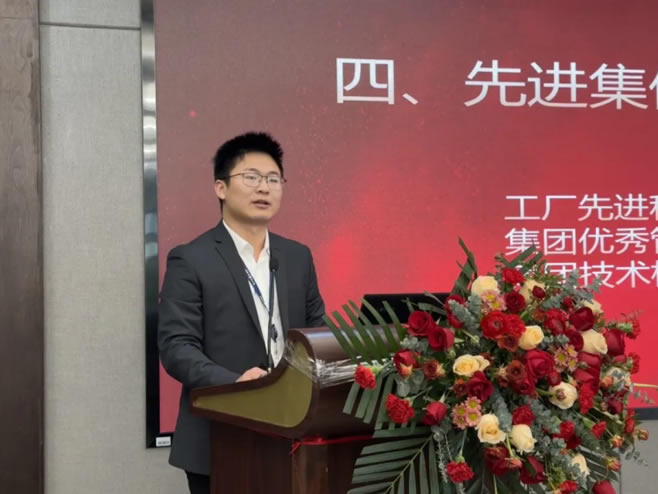工廠先進(jìn)科室檢測(cè)中心趙旭偉主任、集團(tuán)優(yōu)秀管理干部竺望龍主任、集團(tuán)技術(shù)標(biāo)兵竇可銀作為先進(jìn)代表進(jìn)行表態(tài)發(fā)言。